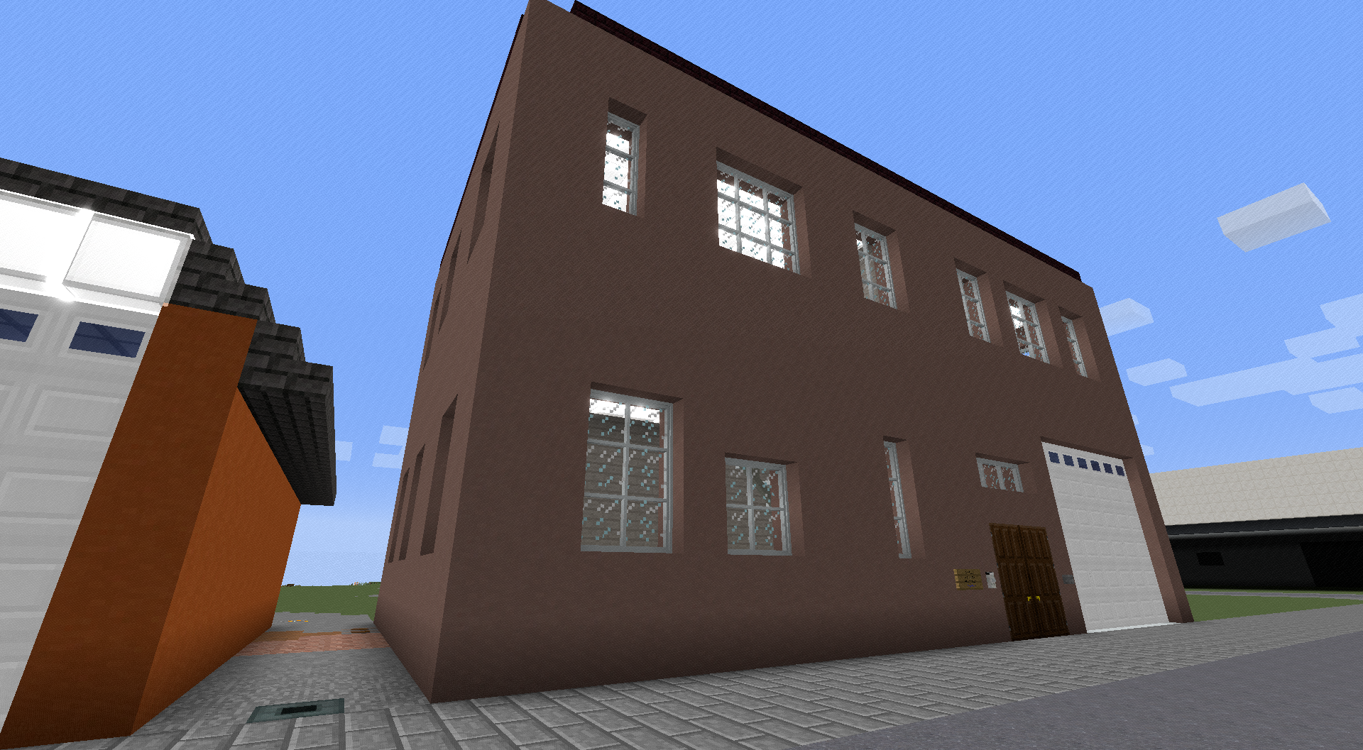 2軒続きのテラスハウス。車庫付き。